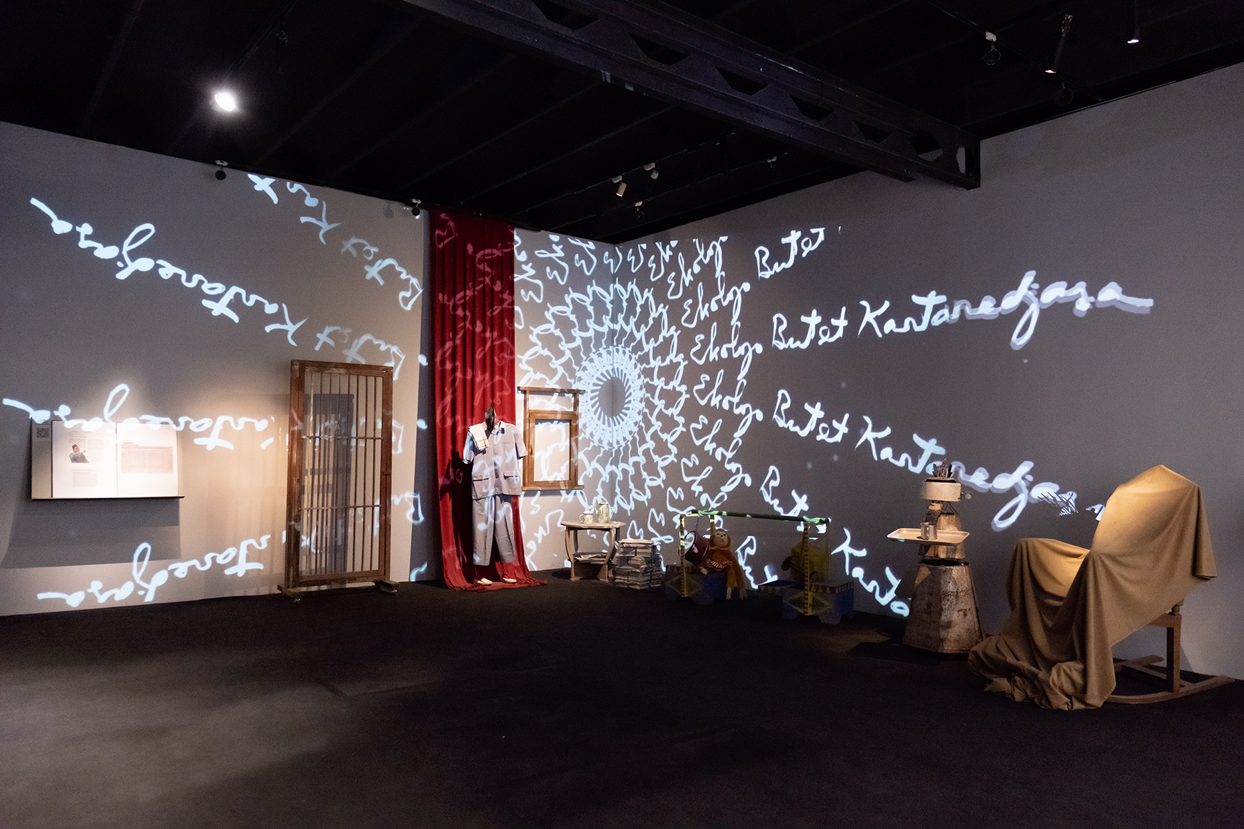Pamerannya di ARTJOG adalah perayaan dari karir panjang ''Raja Monolog'' di dunia panggung dan kecintaannya pada seni rupa. Belakangan, karya seni rupa yang dilakoni Butet Kartaredjasa merupakan ekspresi dari kepercayaannya atas praktik wirid dengan cara menuliskan nama lengkapnya sendiri: Bambang Ekoloyo Butet Kartaredjasa. Di dalam tradisi Islam tujuan mengamalkan wirid adalah demi meraih kebaikan-kebaikan dalam kehidupan. Dengan memraktikkan penulisan namanya sendiri secara berulang-ulang dan terus-menerus, kebaikan serta keberuntungan akan hadir pada kehidupan si pemilik nama. Wirid, seperti dzikir biasanya dilakukan melalui bimbingan seorang guru, usai shalat untuk semakin mendekatkan diri pada Allah SWT. Dua wujud praktik kesenian Butet yang menunjukkan orientasi yang berbeda dalam rentang seperempat abad ditampilkan di ruang ini. Pentas-pentas monolog yang sarat dengan pesan-pesan politis di ruang terbuka sejak akhir 1990-an kini berlanjut dengan monolog personal yang lebih intim dan tertutup lewat ekspresi wirid nama senimannya sendiri. Monolog internal berbau spiritual ini menghasilkan motif-motif grafis atau piktogram dalam karya-karya visualnya di pameran ini.