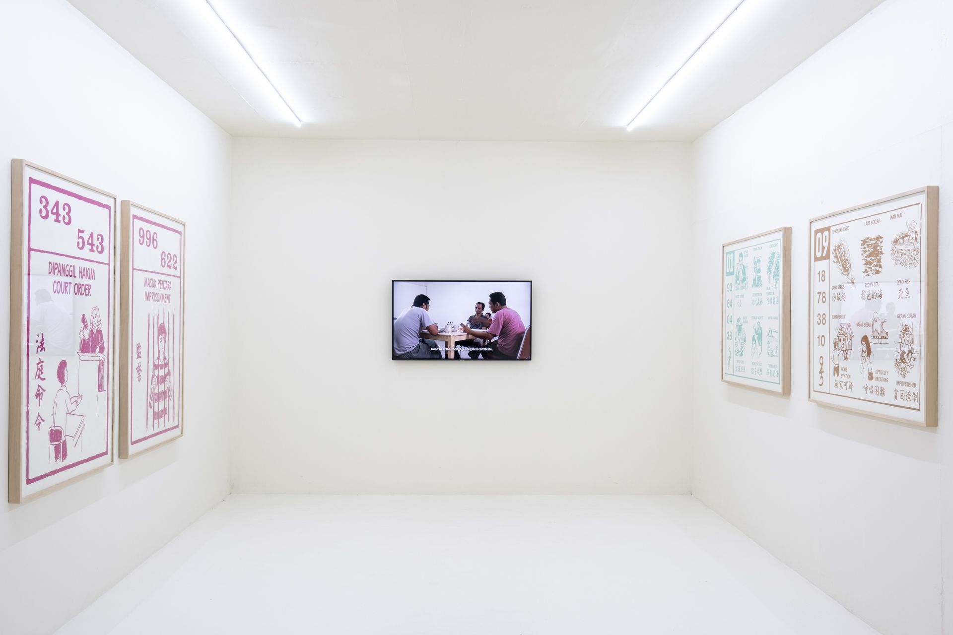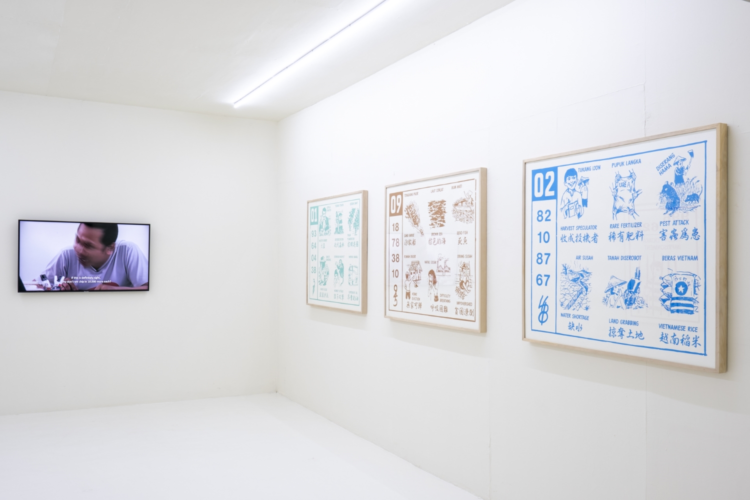 Karya-karya seni grafis yang ditampilkan bersama video ini terinspirasi dari gambar-gambar dalam buku tafsir mimpi para penjudi togel. Cetakan ini mengandung kode-kode yang relevan dengan situasi terkini dan penanda masa depan terkait lingkungan, pangan, ekonomi dan hukum.
