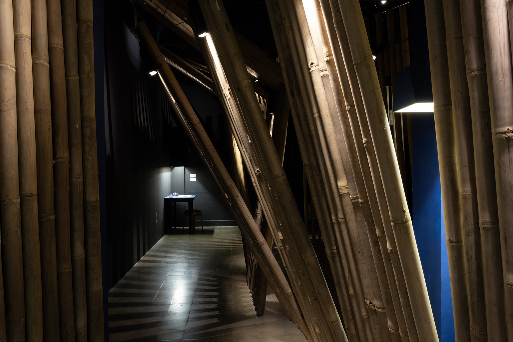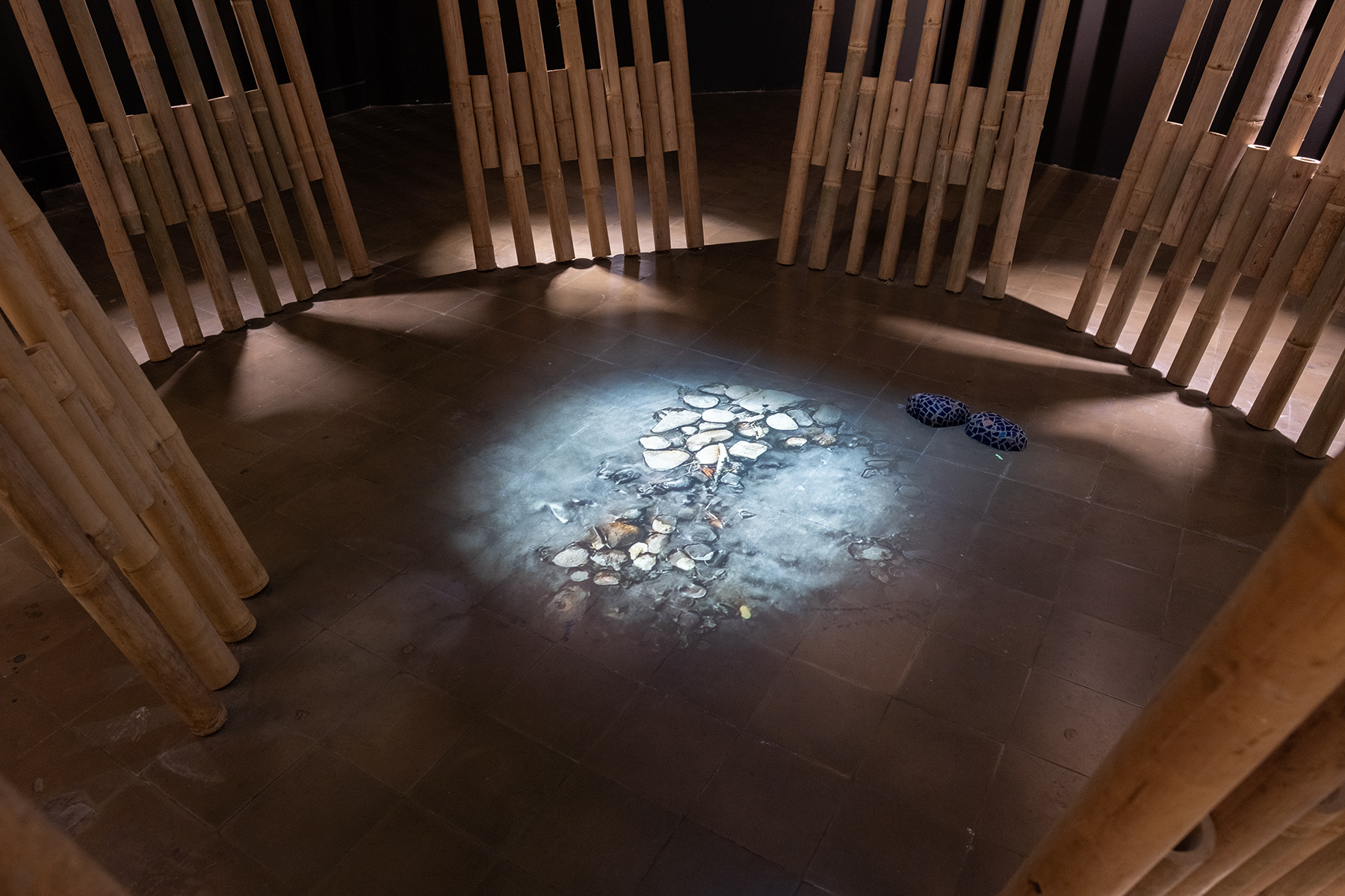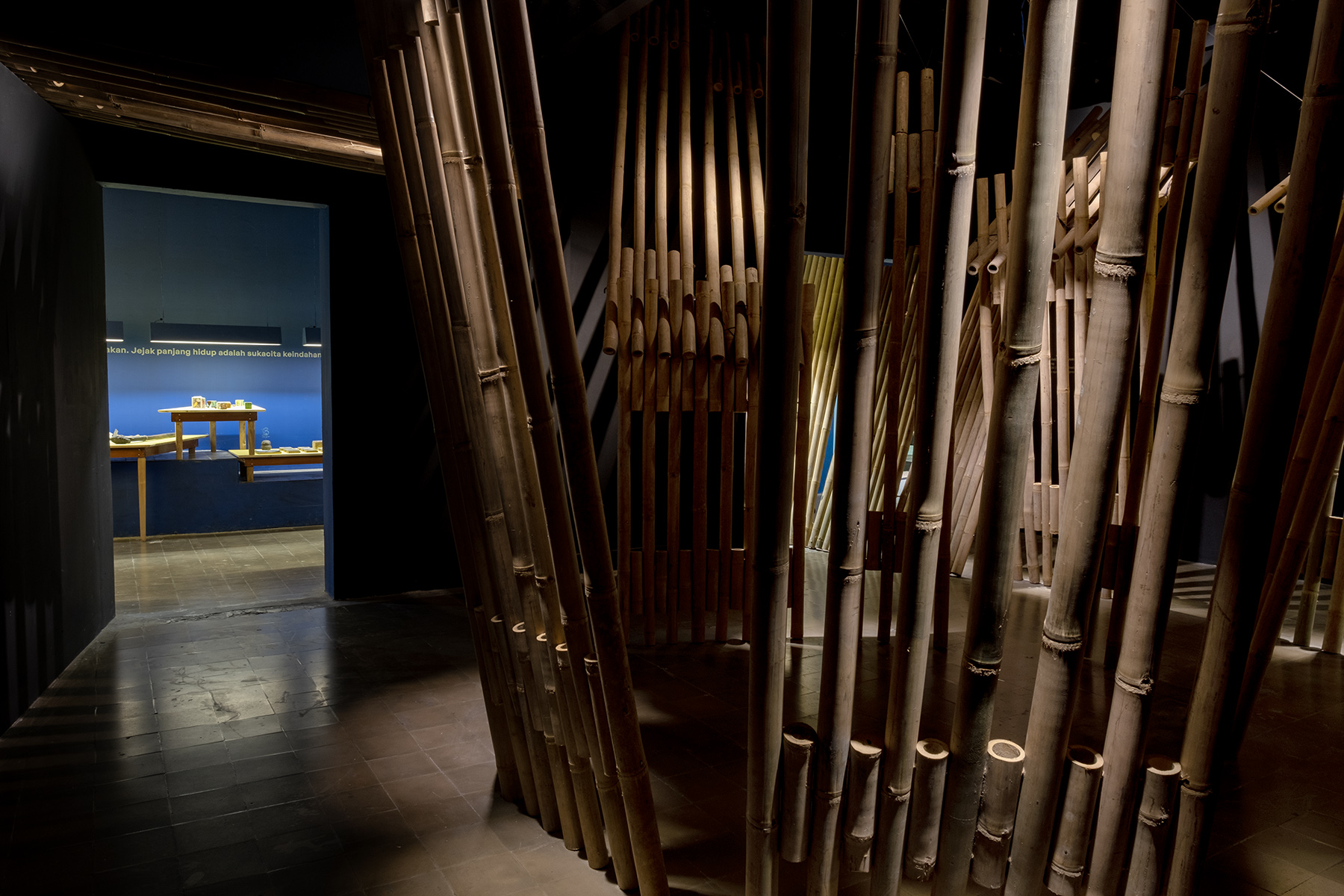Leng, karya instalasi bambu yang dihadirkan di ruangan ini menandai debut Eko Prawoto di ranah seni rupa. Karya ini pernah ditampilkan pada pameran tunggal Eko di Rumah Seni Cemeti, Yogyakarta pada 2008. Susunan bambunya yang berjajar mengingatkan pada motif pagar yang bersahaja, pembatas halaman rumah dengan jalanan di kampung. Ketinggiannya mendinding, sebagian menyentuh atap. Pagar atau dinding? Batas atau sekat? Aktif atau pasif? Ambang itulah yang ditampakkan melalui Leng. Pemisahan lunak antara garis-garis bambu yang tegak atau rebah menjorok, saling topang atau bersinggungan melahirkan irama yang mendorong pengamatan aktif dan kepekaan afektif. Leng adalah permainan sekat di dalam ruang, wahana atau bayangan yang mau menghantar, bukan penghalang. Sebagaimana Eko menyebut karya arsitekturnya sebagai "arsitektur kampungan", instalasi bambu ini dapat dijuluki "instalasi kampungan".