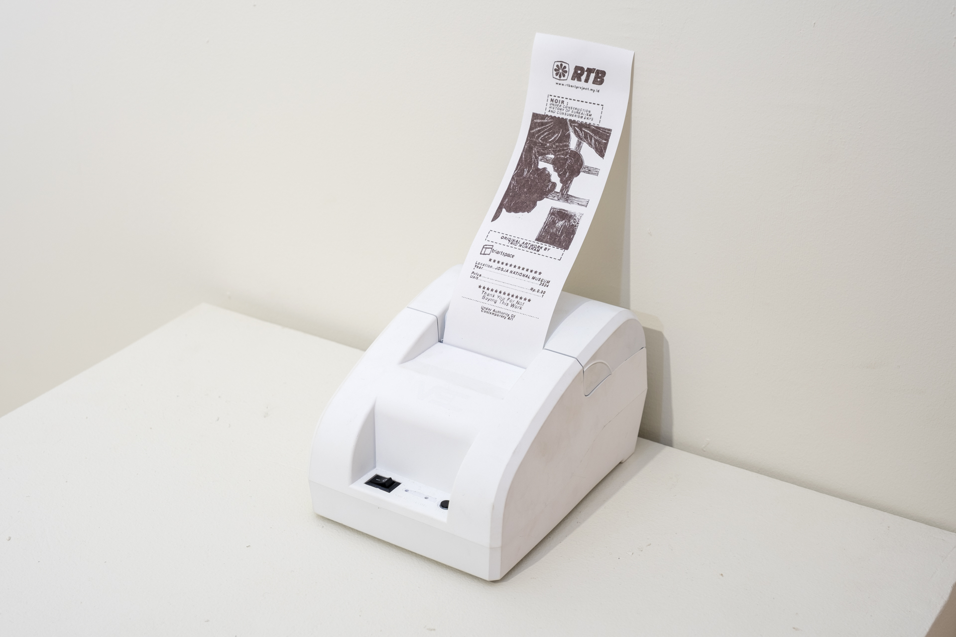 Meminjam image-image rekaan yang seolah adalah bagian dari adegan film-film noir, saya ingin menawarkan sebuah "rangkaian" peristiwa keseharian yang "biasa aja" mengenai hidup seorang tokoh rekayasa yang ada dalam setiap gambar. Seperti halnya pada setiap kisah hidup tokoh sejarah, di kemudian hari kisah tersebut akan diglorifikasi dan tak jarang menjadi komoditas, seolah peristiwa masa lalu mesti dirayakan dalam perspektif masa depan. Komodifikasi, industrialisasi dan serangkaian kerja kapital kemudian terefleksi dalam wujud-wujud benda yang sering kita temui dalam keseharian. Struk belanja, mesin kasir, layar beberapa inci, angka-angka dan pola transaksi lainnya adalah bagian dari kita hari ini. Dengan menduplikasi pola dari serangkaian proses itu, karya ini mencoba merefleksikannya dengan melibatkan interaksi antara benda seni dan apresiator.