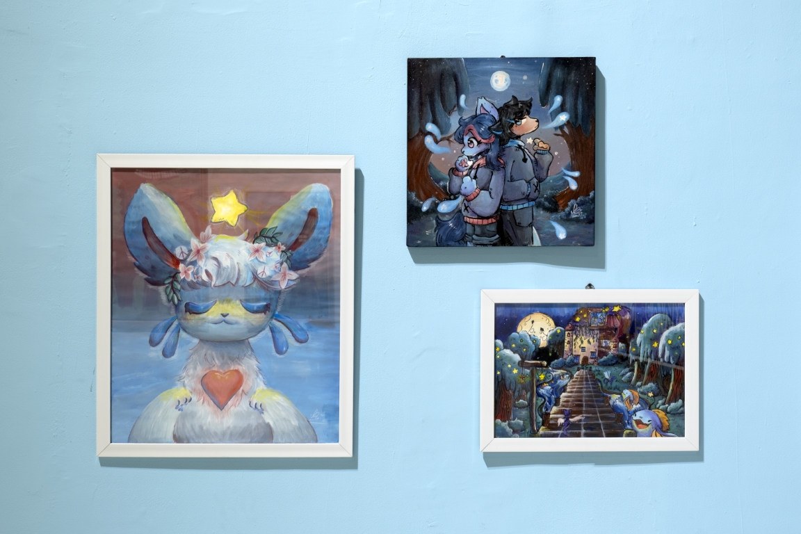 Sementara itu, aku juga memiliki kenangan indah pada karya The Starry Palace. Karya ini adalah saksi perjuanganku saat pertama kali memakai teknik cat akrilik. Di dalam karya ini, aku ingin menyambut kalian di sebuah istana yang indah dan diisi oleh para binatang dari berbagai belahan dunia. Kalian juga bisa menjelajahi keajaiban di balik hutan yang damai. Tempat ini terbuka lebar untuk kalian semua!