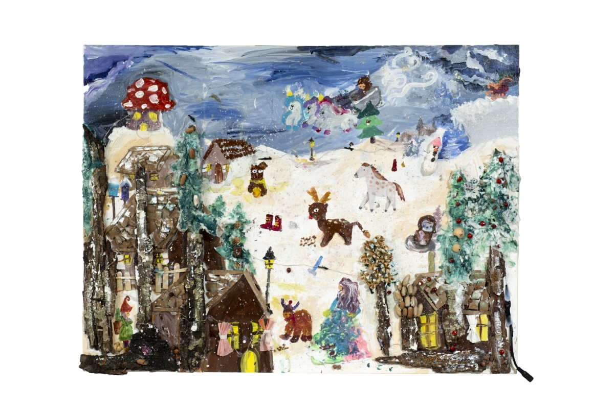 Saat aku tinggal di Australia, aku sering menghabiskan waktu luang untuk bermain salju ketika musim dingin datang. Saking senangnya, terkadang waktu berlalu begitu sangat cepat. Bermain toboggan (kereta luncur) dan membuat boneka salju adalah kegiatan favoritku. Aku ingin sekali menyampaikan pengalaman itu lewat karyaku!