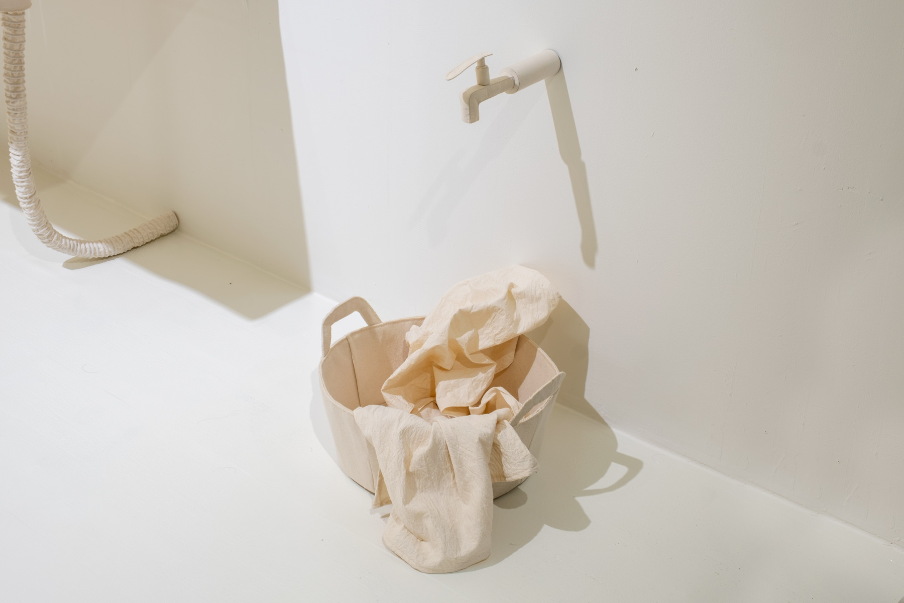 Karya Veronica Liana berwujud instalasi benda-benda keseharian seperti perangkat santap, alat memasak, kompor, wastafel, bak cuci baju, seterikaan, colokan, sapu, kemoceng, sandal jepit, mainan anak sampai laptop dan lain-lainnya. Semua barang itu dibuat dari kain katun berbahan serat alam; identitas trimatra dan kehadirannya sedikit tersamar karena keserupaannya yang disengaja dengan warna dinding di dalam ruang pameran. Veronica tertarik mengamati aktivitas dan peran barunya sendiri sebagai seorang ibu di rumah. Kesibukannya sepanjang hari menimbulkan inspirasi untuk karya barunya yang dia sebut sebagai bentuk realisme yang lebih jauh. Realisme bukan sebagai teknik melukis yang selama ini ditekuninya, melainkan proses meniru objek-obyek trimatra dengan menggunakan wahana yang selama ini akrab dengannya, yakni kain kanvas.